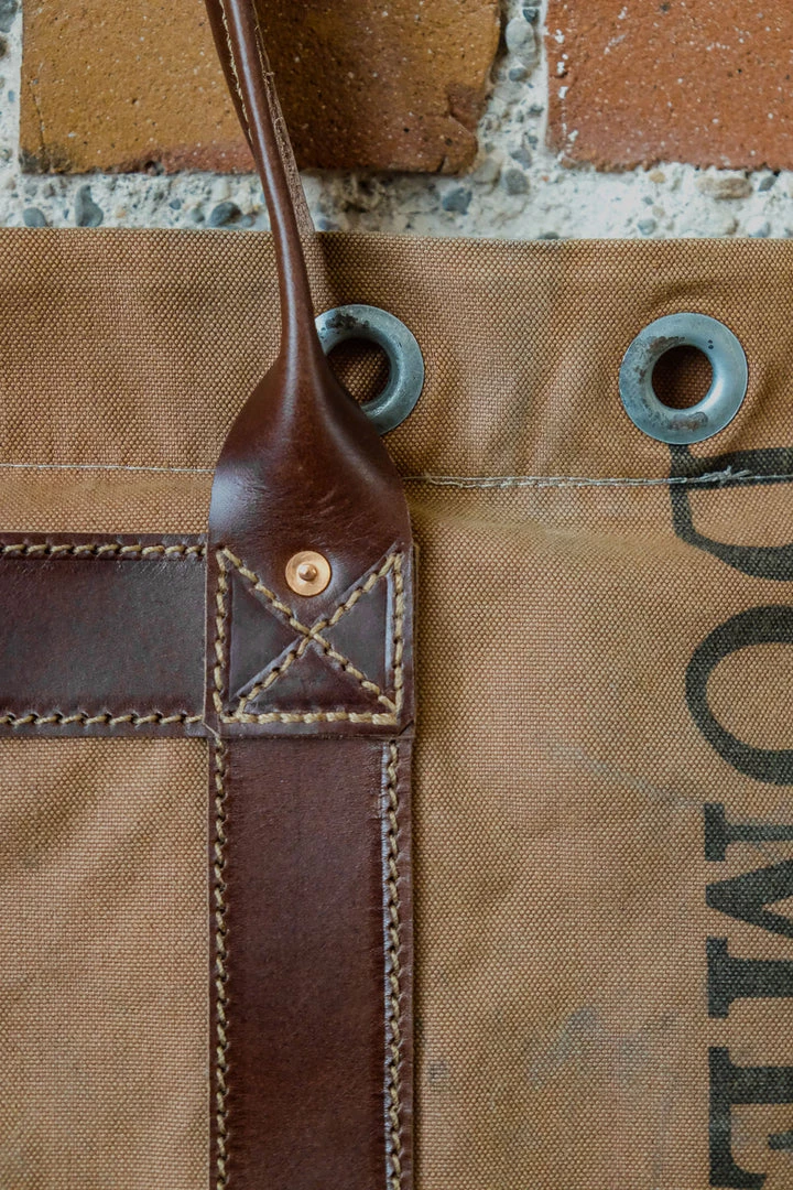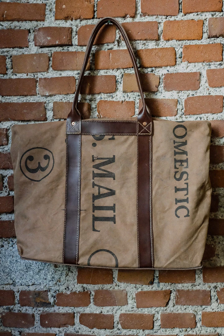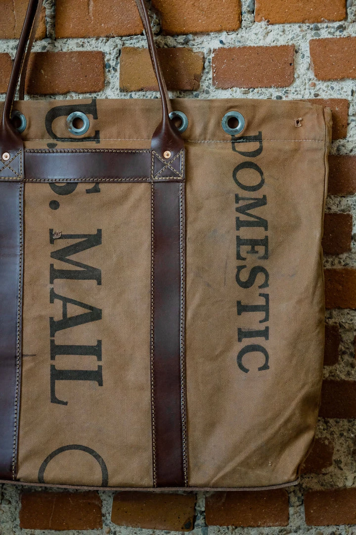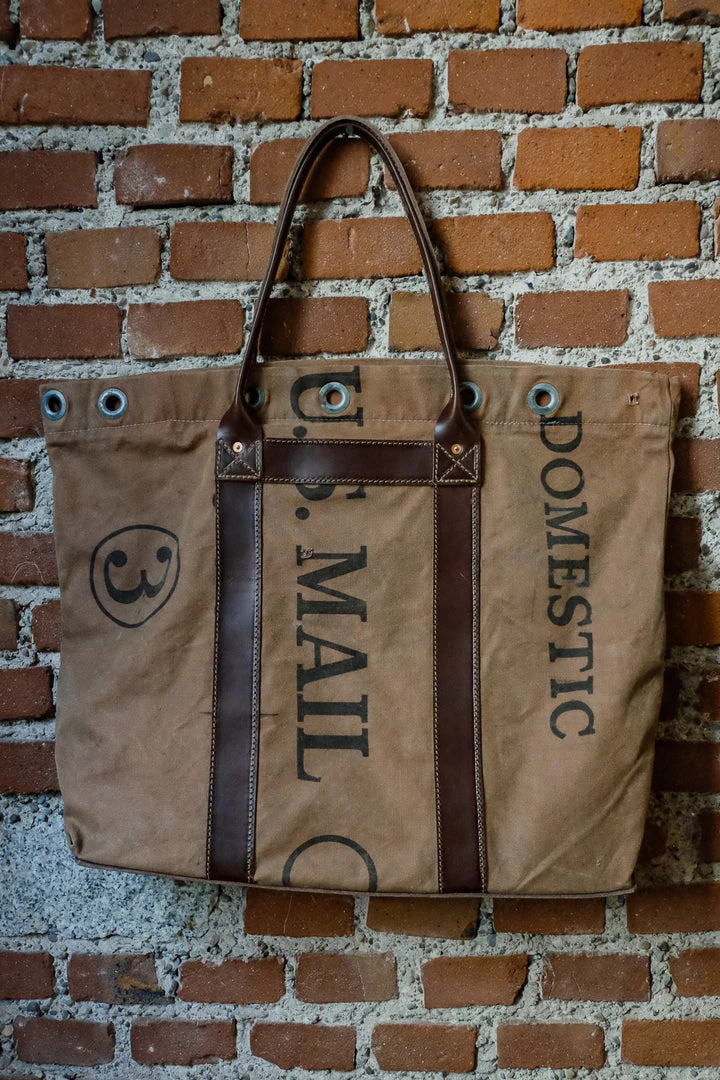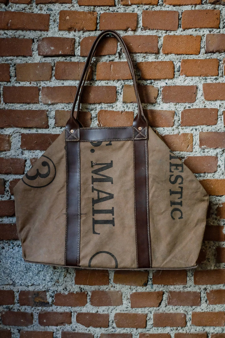 We brought one of our original vintage US MAIL postal bag to Actawl and asked him to rework it into a “new” Tote Carrier Bag.