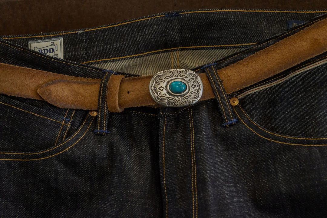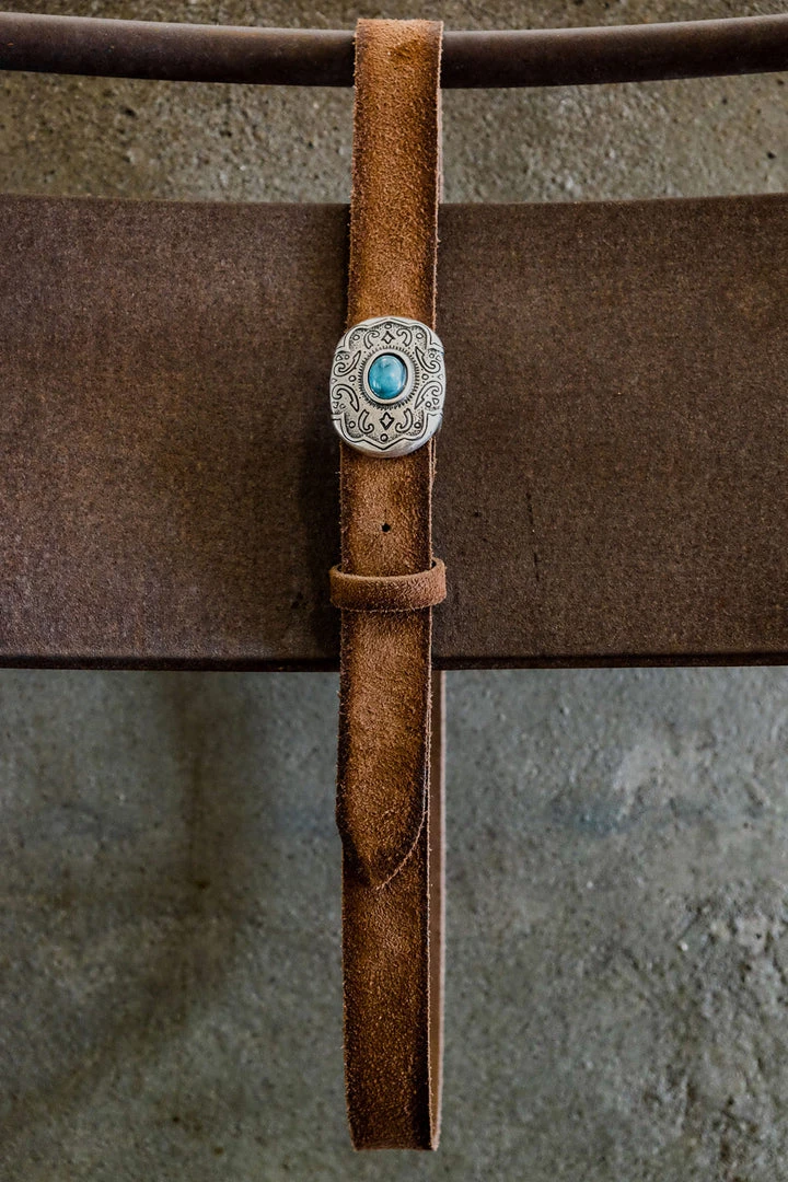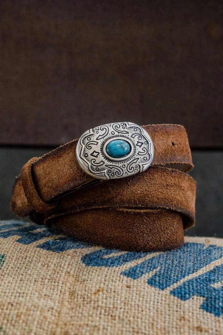 Alberto Luti – Suede Leather Belt In Tobacco (Western Turquoise Buckle)