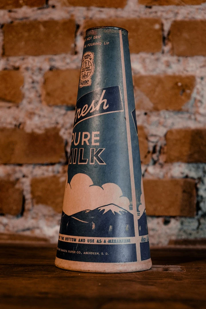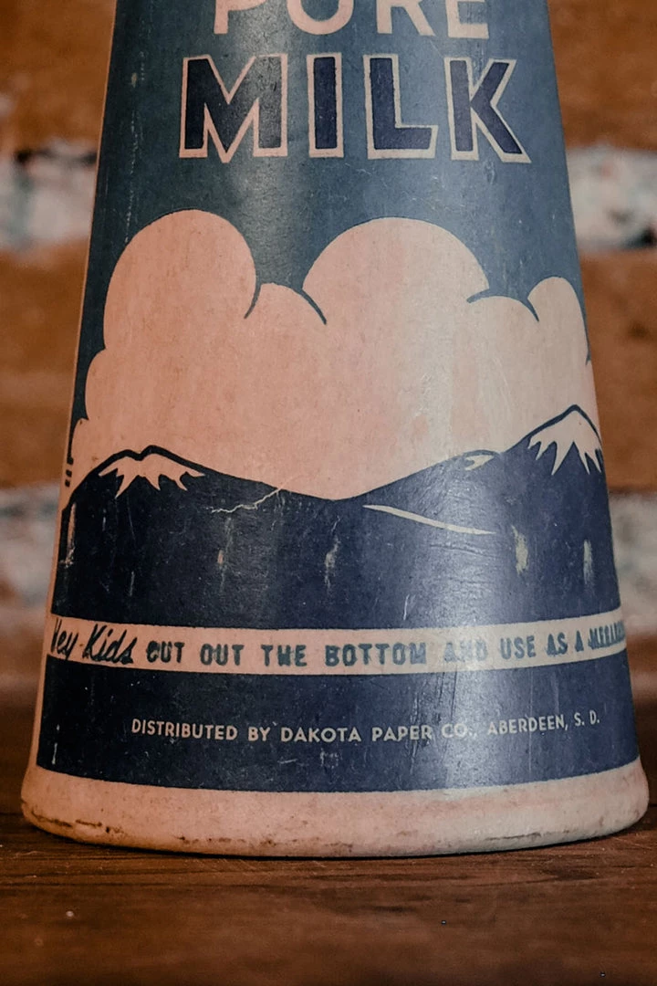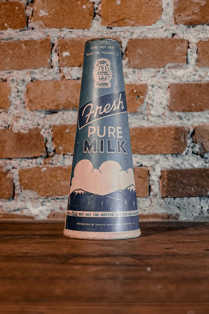 Antique and rare DAKOTA PAPER CO, Aberdeen (South Dakota) Wax Kone Paper Dairy Milk Container – 1 Quart. Dated: c. 1930/40’s