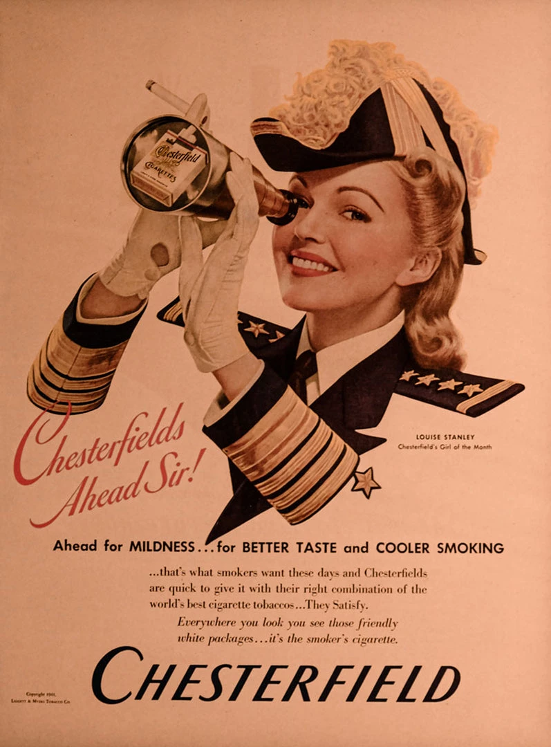 Chesterfields Ahead Sir! Ahead for mildness, for better taste and cooler smoking