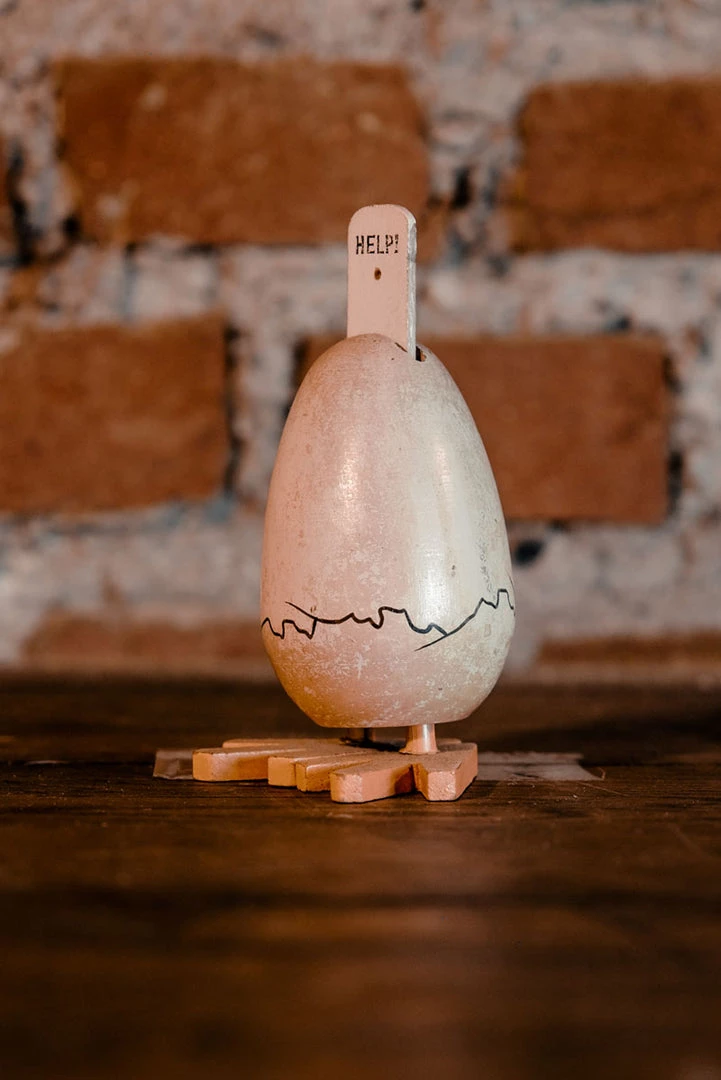 Cracked Egg Popsie from Pride Creations, Inc. straight from the 60’s. Super funky vintage toy. It works great and when pressed down shows sign that reads HELP!