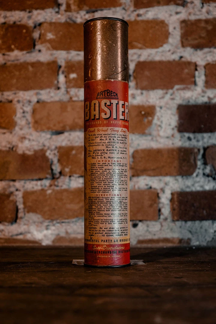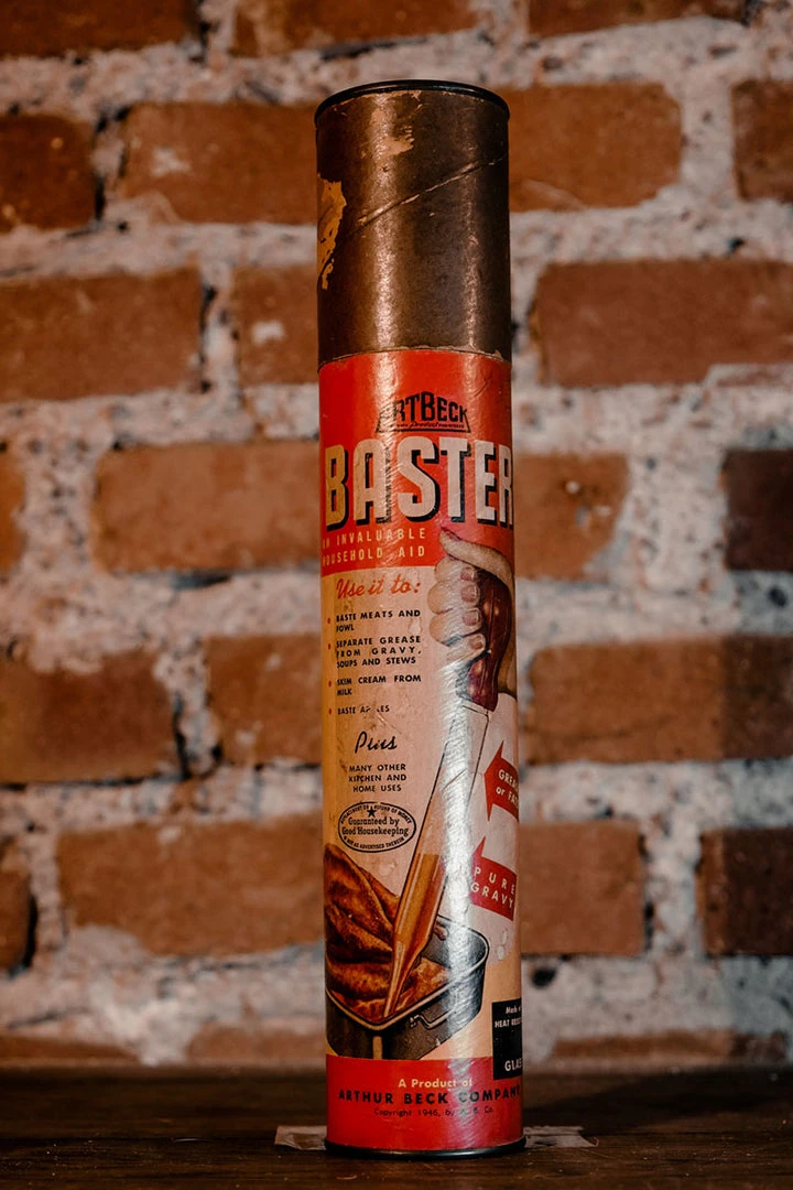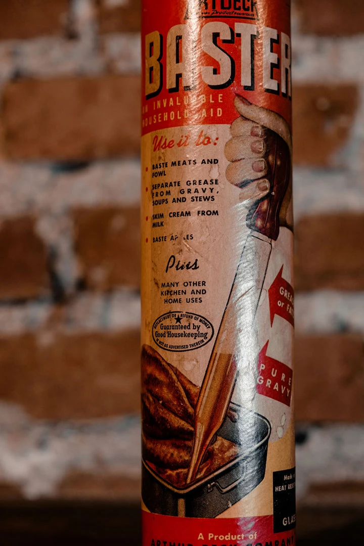 The baster and the packing is in excellent vintage condition. Minor scratches on the pack due to age.