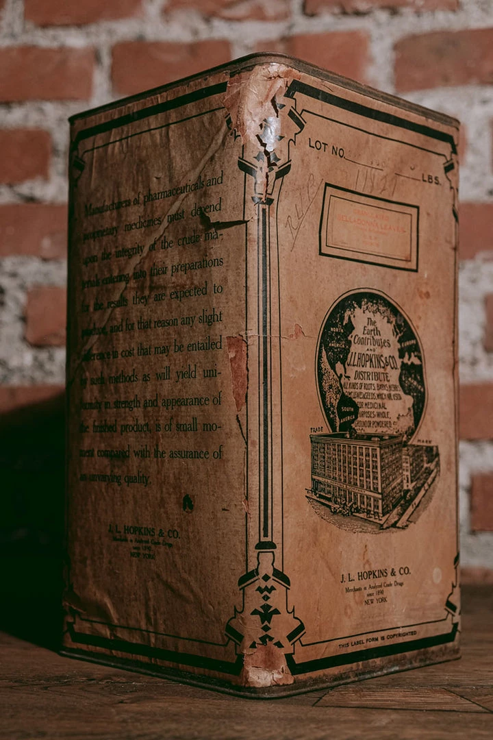 This is a wonderful old and large Belladonna Leaves Tin from the early 1900’s.