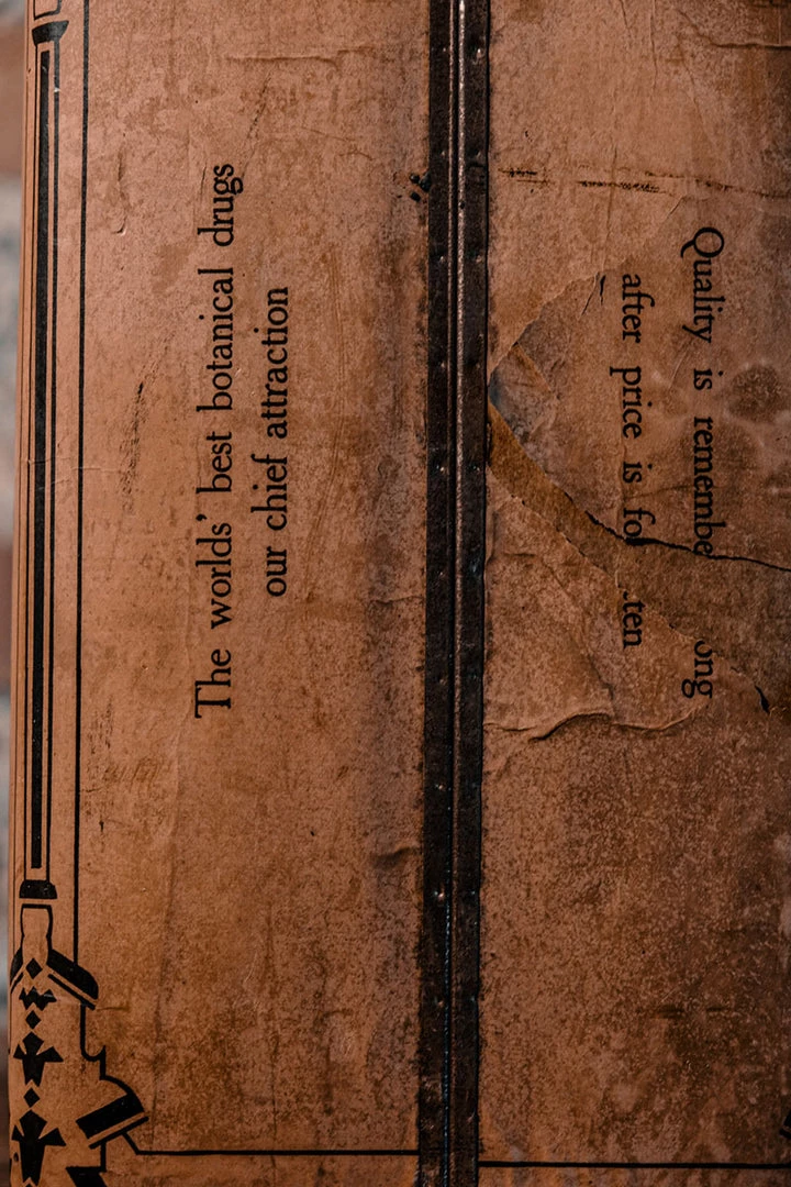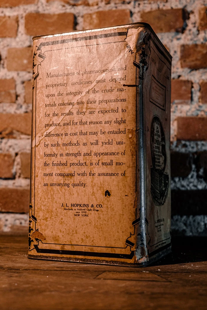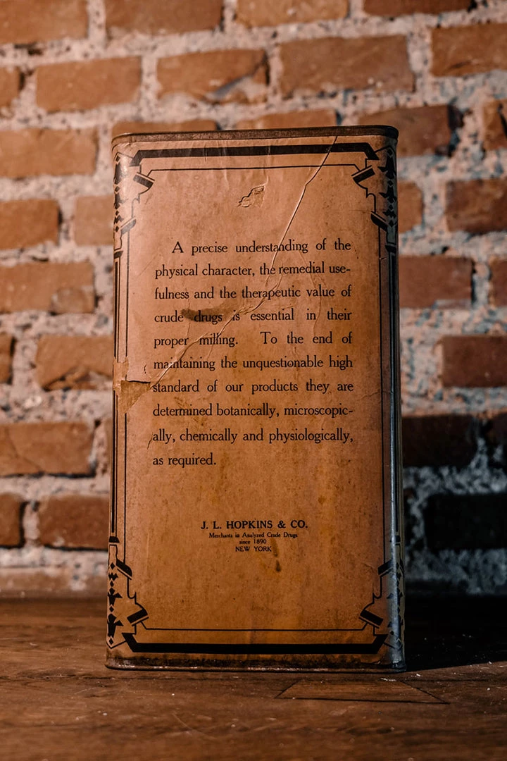 Item is used and is more than 100 years old. It shows a lot of wear, has scratches all over the surface. Paper is ripped in some parts of the label. Marks all over the label. The top lid removes and has rust. Sold as is.