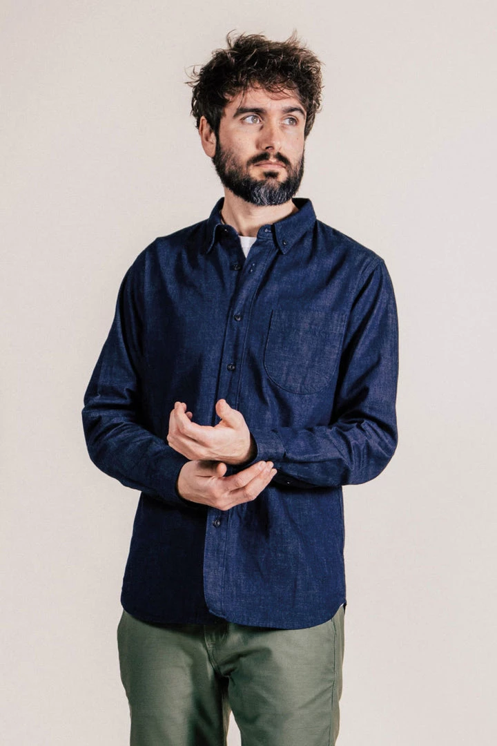 The BDS-02 ONE POCKET SHIRT is a contemporary take on a classic button-down shirt. The shirt features one chest pocket with a slanted opening and rounded bottom to follow the chest’s contour. The back side features a classic box pleat, that allows for better movement.