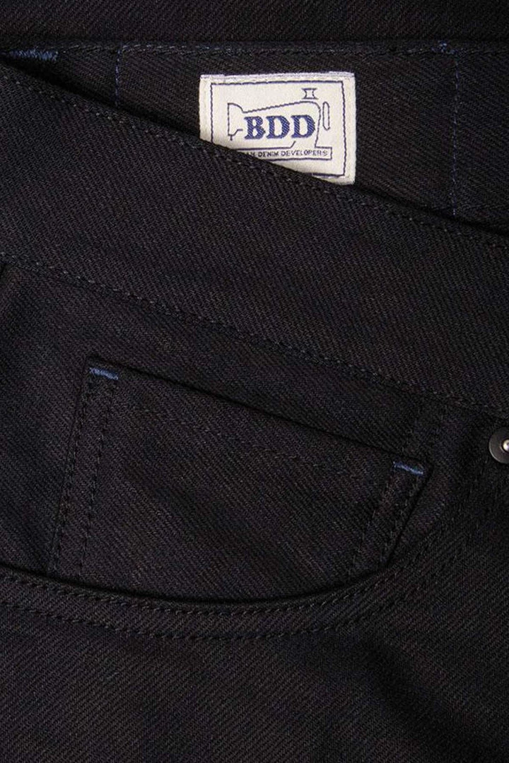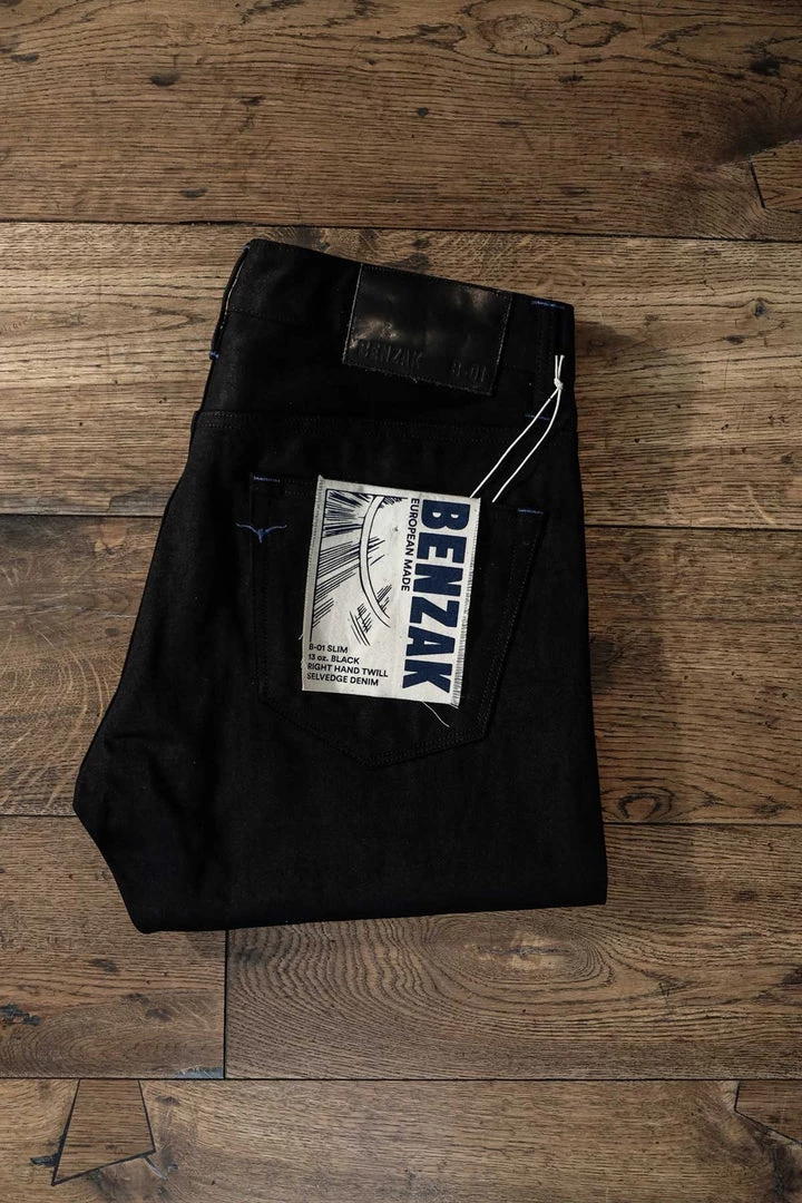 Both warp and weft are dyed black of our 13 oz. BLACK SELVEDGE. Just like indigo, this sulphur dye will fade and becomes more beautiful after wear. The fabric is woven by Candiani Denim and has been part of the collection ever since the EUROPEAN MADE line was released in the Fall of 2016.