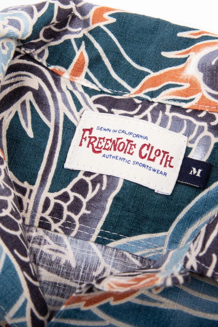 This is the Freenote Cloth take on the classic Hawaiian or Aloha shirt. These shirts were first introduced in the 1930’s and gained popularity in the 50’s. The original Hawaiian shirts were made of recycled kimono fabric. In order to perfect the fit, Freenote researched a good friend’s collection of vintage Hawaiian shirts spanning across several time periods.