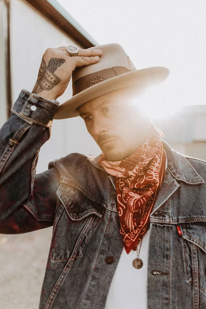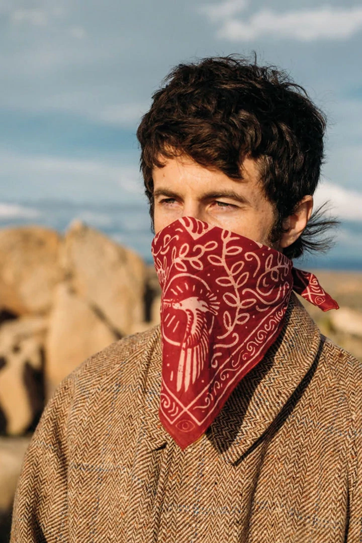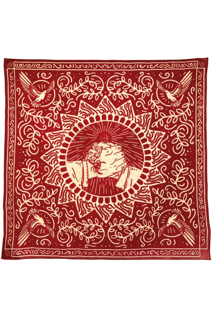 21 x 21 inch bandana. Machine wash cold with like colors, line or tumble dry, warm iron, do not bleach.