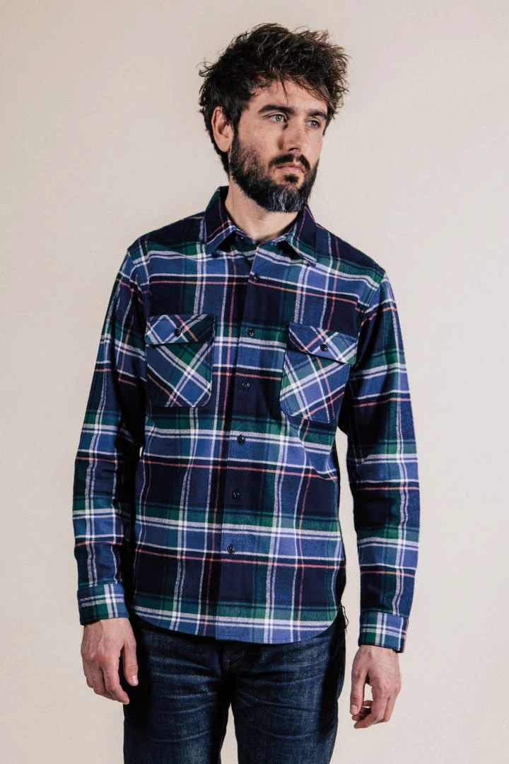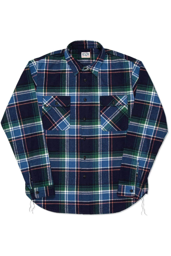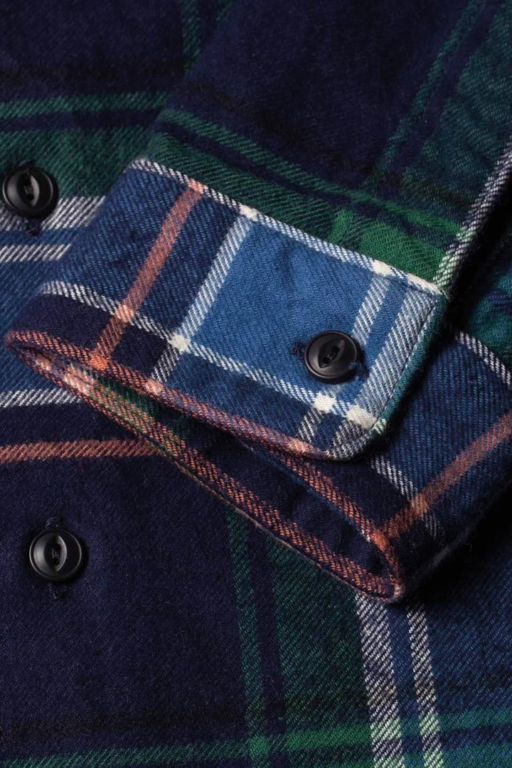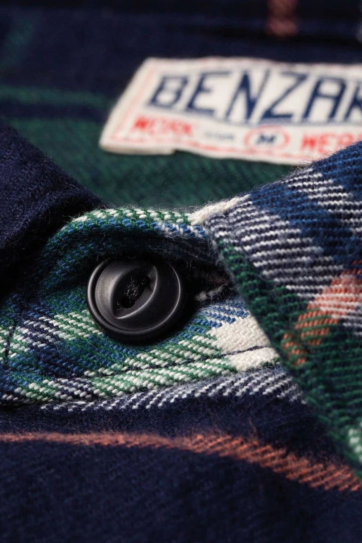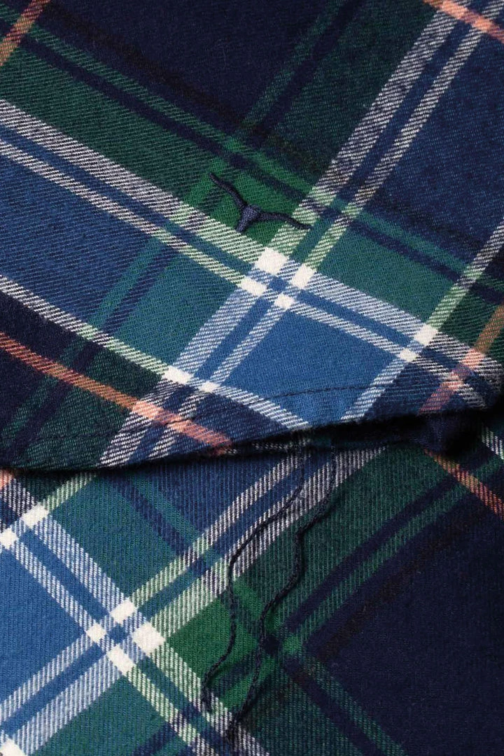 The BLUE & GREEN CHECK FLANNEL pattern has been designed in-house and woven exclusively for Benzak by Teviz near Porto, Portugal. The color combinations are carefully selected to transcend seasons and stay relevant in every man’s wardrobe for years. The flannel fabric is woven on a relatively high tension, making it compact and a sturdy 8 oz. in weight, while it has been brushed on both sides for a soft touch. The inside is brushed twice for extra comfort.