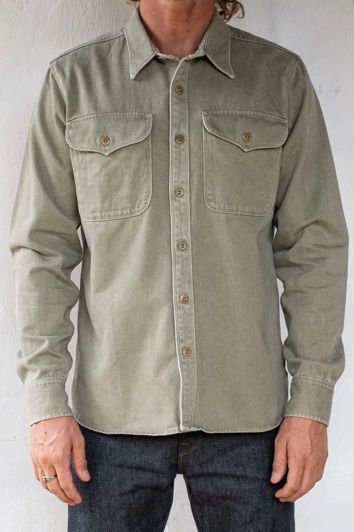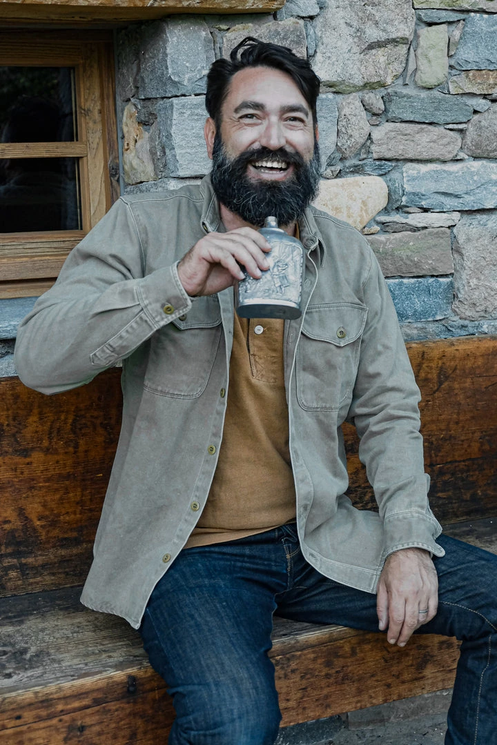This shirt is one of our fav here at The Rugged Society. Outstanding quality and craftsmanship. The fabric is super soft and cozy and the olive color is beautifully subtle. Great for layering if used as an overshirt, but also classy as a standalone piece. Durable and noticeably high quality fabric.
