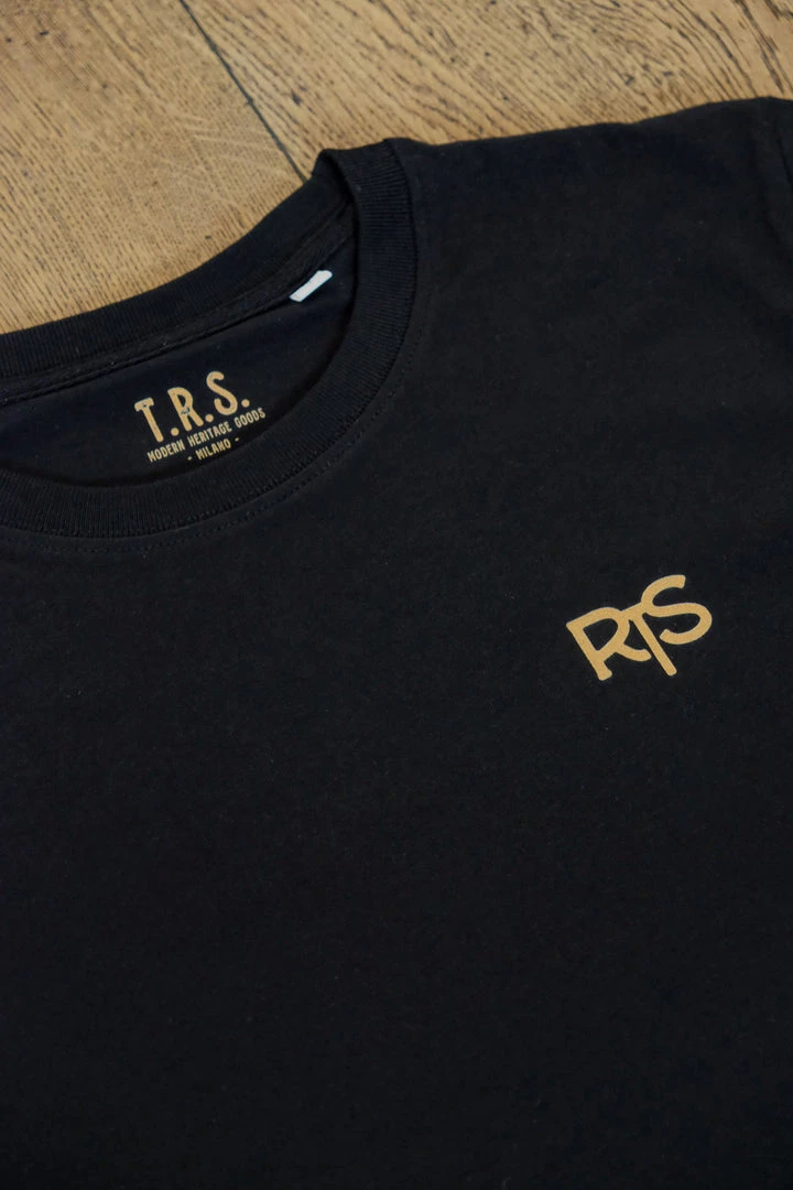 It features a backprint with a vintage washed feel and a front heart print with TRS initials.