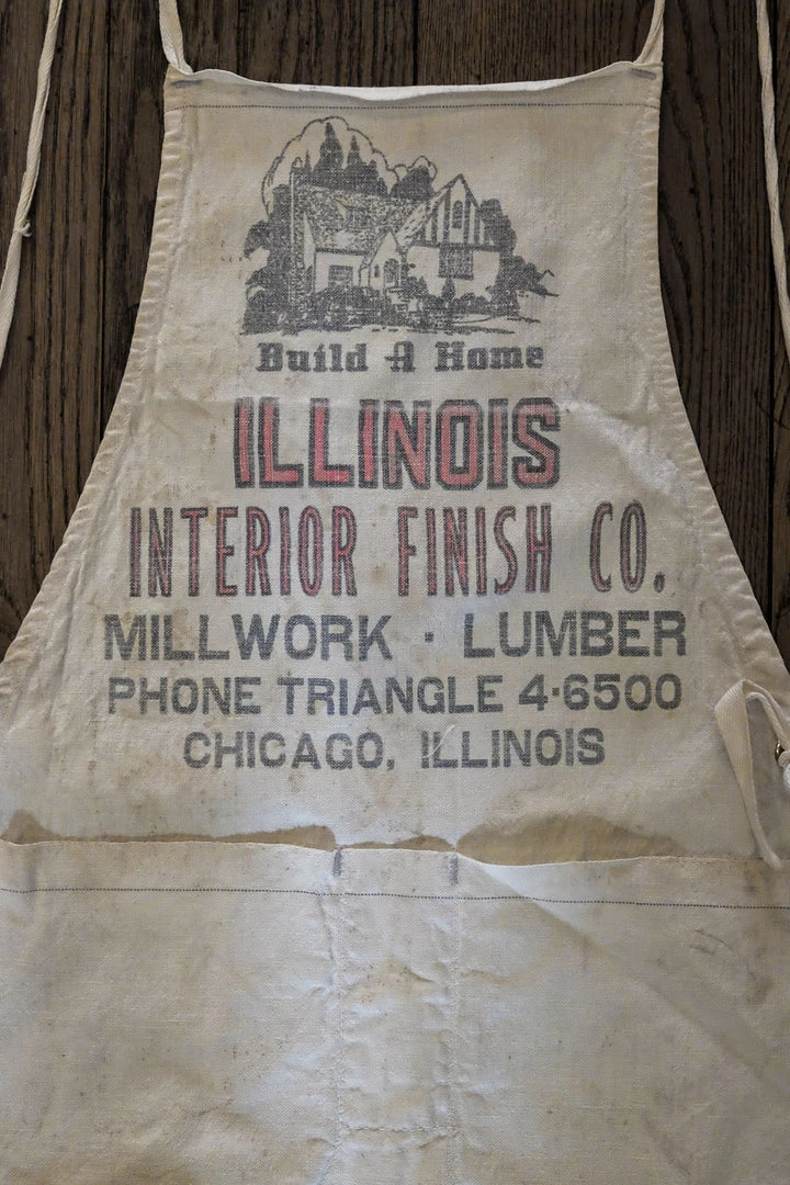 Rare Original Vintage Carpenter Apron from Illinois Interior Finish Co. – Chicago with two front pockets.